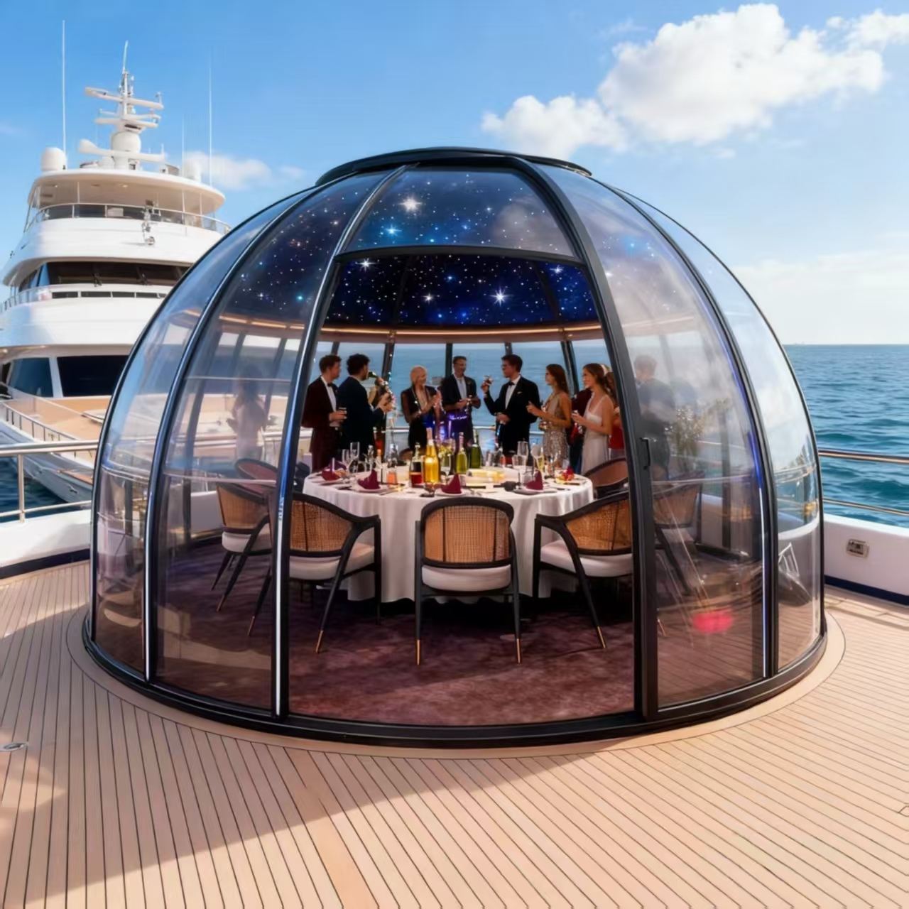 配置:PC弧形模块+PC穹顶+铝型材骨架+铝框门